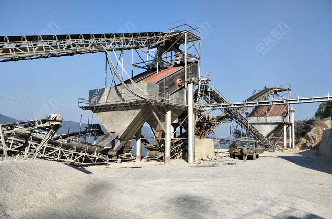 設備配置:DLZG1550給料機、DLPCZ1615重錘破碎機 、3YK2470振動篩*2臺、2YK2470振動篩*2臺