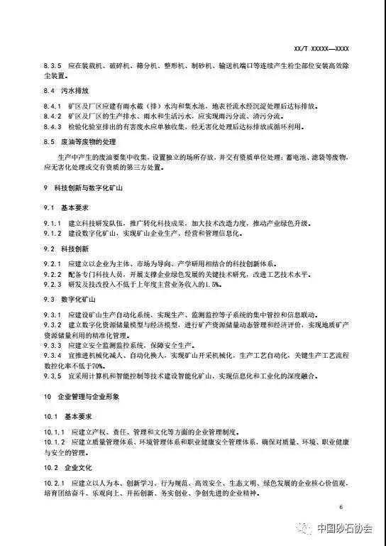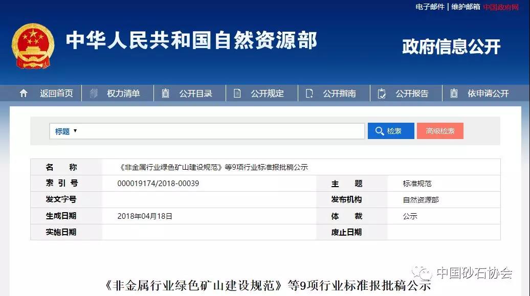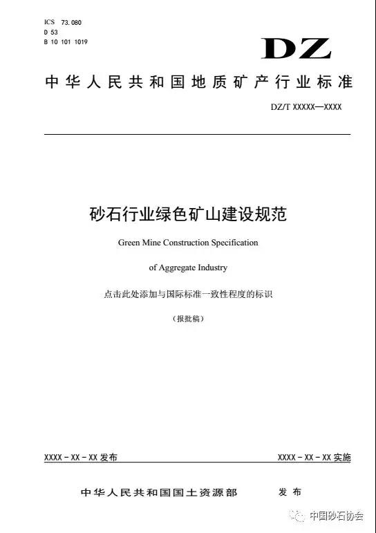 按照土資源行業(yè)制定程序要求和計劃安排,中砂石協(xié)會組織編制的《砂石行業(yè)綠色礦山建設規(guī)范》報批稿已通過土資源化技術委員會審查,現(xiàn)予公示。同時進行公示的還有《非金屬行業(yè)綠色礦山建設規(guī)范》等,共9項行業(yè)報批稿。