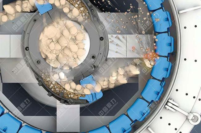 立式復合破碎機提率方:1、調改好驅動V型皮帶:立式復合破碎機的驅動三角繃緊度應調改合適,以三角膠帶受力均勻;2、葉輪系統可以不錯的調整石頭在碎石腔內進行