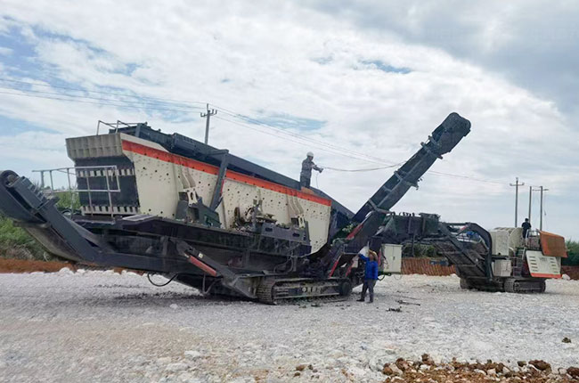 “給料+破碎+篩分機”屬于移動破碎篩分站,集給料機、破碎機、篩分機、皮帶機于一體,可以自成一條生產線,實現破碎篩分作業,可直接生產不同規格的石子骨料。
