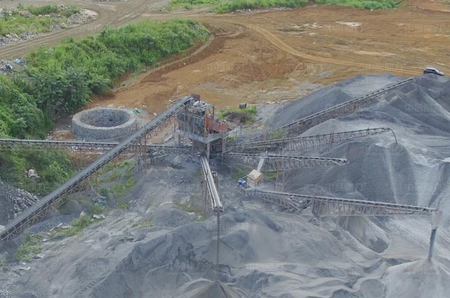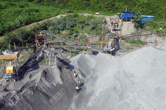該項目直接采用一臺重型錘式破碎機,型號為PCZ1512,時產250-320噸,符合用戶日產3000噸的生產需求,生產線除去破碎設備外,就是兩臺3層篩網的篩分機,可以直接篩分出0-30mm的混合料、10—20、10—30、瓜米、石粉等物料