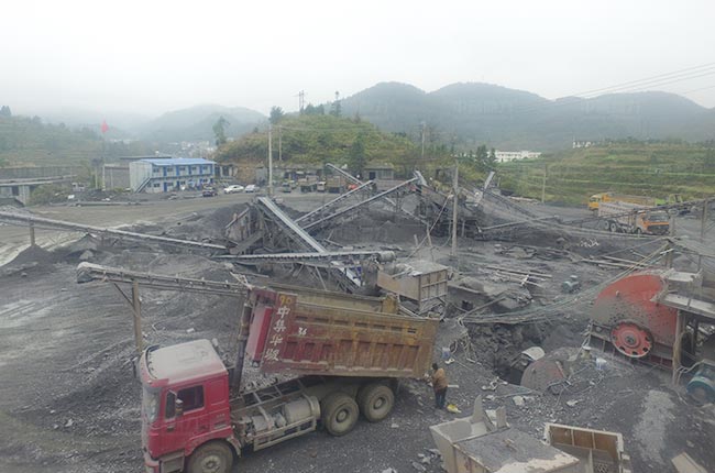 湖南湘西日產(chǎn)5千噸碎石生產(chǎn)線配置簡單,采用PCZ1615重型錘式破碎機(jī)為主要破碎設(shè)備,無二級(jí)破碎設(shè)備,采用兩道篩分工藝,成品骨料粒型多。