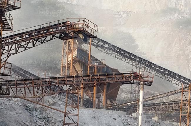 這個日產五千噸噸石料生產線2017年8月投產,破碎石灰巖物料,生產0-5、1-2、1-3等多種規格的碎石骨料,采用一次成型的PCZ1815重錘式破碎機配置方案。