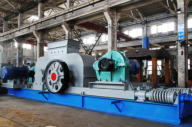 礦用矸石破碎機(jī)由輥輪構(gòu)成,機(jī)架部分,壓緊和調(diào)節(jié)系統(tǒng)和驅(qū)動(dòng)系統(tǒng)等部分構(gòu)成,驅(qū)使系統(tǒng)由兩個(gè)電機(jī),經(jīng)過三角皮帶驅(qū)動(dòng)到槽輪上拖動(dòng)兩輥輪相比轉(zhuǎn)動(dòng)運(yùn)動(dòng)來碾壓破碎物料,該礦用矸石破碎機(jī)在對石料進(jìn)行粉碎制砂時(shí),其原理是把被破碎的物料放入兩個(gè)相向運(yùn)轉(zhuǎn)的破碎輥上面,靠輥?zhàn)訉ξ锪系哪Σ亮ψ饔枚鴮⑽锪蠂雰奢佒虚g,慢慢被壓碎,破碎產(chǎn)品從兩輥底部縫隙中排出,機(jī)械能夠經(jīng)過變化兩輥間的底部縫隙,能夠調(diào)改產(chǎn)品規(guī)格。