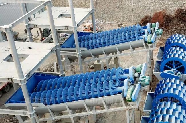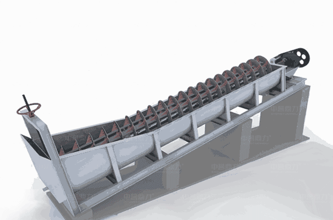 雙螺旋洗沙機(jī)洗砂原理是通過(guò)被清洗砂的比重、沉積速率,通過(guò)螺旋葉片不斷翻攪砂料,實(shí)現(xiàn)清洗,翻攪的砂會(huì)逐漸推向出料口,清洗的過(guò)程中水泥混合、輕質(zhì)雜質(zhì)漂浮通過(guò)溢流口排出。
