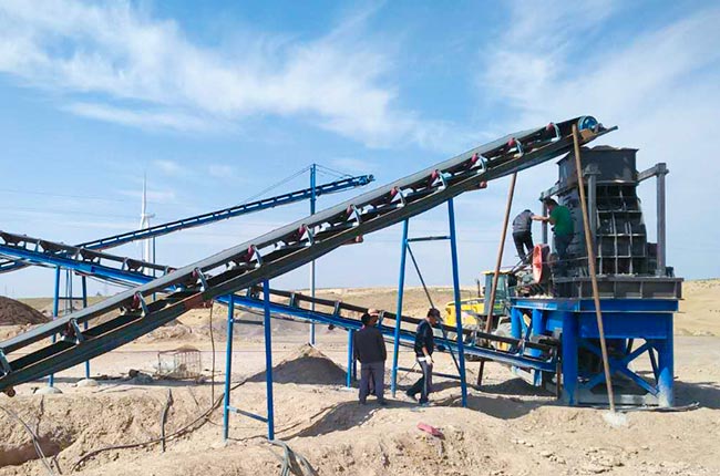 | 方案一 | PE750×1060顎式破碎機+HPT400圓錐破碎機+VSI6X1040整形制砂機+4YK2460振動篩+配套設備 | 顎破機粗碎,圓錐破中細碎,沖擊式制砂機整形,能生產出多種規格、形狀好的成品砂石,有洗沙需求,可配置洗沙設備 |