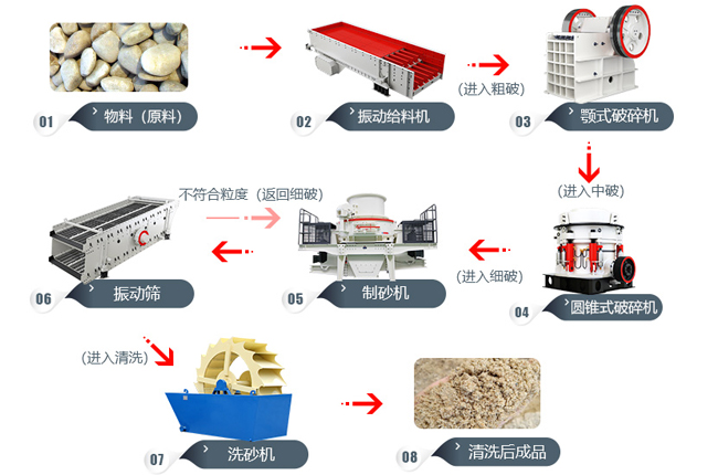 應用用戶:風化石大多數是風吹日曬造成,所以粒型很多不規則,該生產線適用在處理量在100噸左右,不大于500毫米的風化石制砂用戶,整體風化石制砂機械價格優惠,但是處理量提高一倍,該搭配方案。