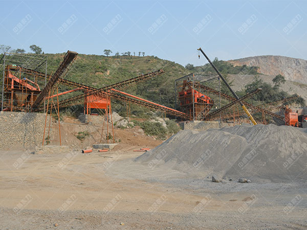 原料堆內的巖石在振動喂料機的影響下,被均勻、持續的送入圓錐碎石機進行破碎解決,經破碎后的巖石由運輸機運輸到碎砂機進行制砂生產解決,制砂后的巖石進入篩機進行篩選分級,合格的則進入洗砂機進行清洗解決,不合格的返回碎砂機進行又一次制砂生產,洗沙后的巖石在運輸機的影響下輸出即為成品。