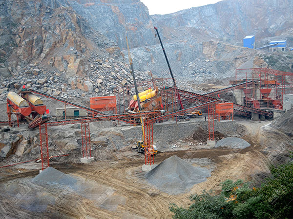 機(jī)械配合:2臺HX-07碎砂機(jī)、2臺PE1200-1500顎破、2臺HP噸300液壓圓錐破碎機(jī)、篩機(jī)等