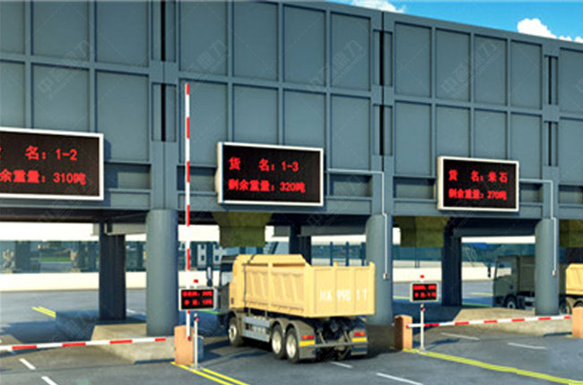 3、砂石料裝車系統(tǒng)自動保存裝車數(shù)據(jù),并有LED屏實時展示已裝載石料重量,裝車完成,車輛即可駛出。